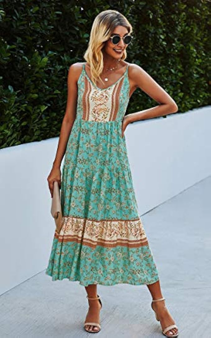 • Feature: This maxi dress is featured with floral print, deep v neck, adjustable spaghetti strap, maxi length, a-line, light weight, and in casual and bohemian style.