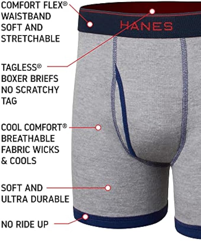 • QUALITY FABRIC – Our Hanes boys' boxer briefs are made from breathable 100% cotton that's soft and moves with him through school, sports, and beyond.