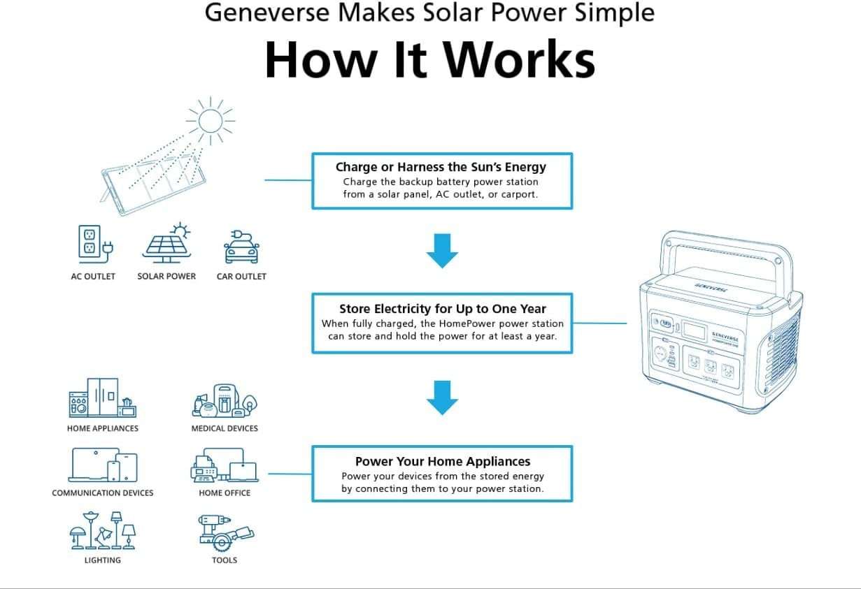 * The most reliable power. Recharge your Geneverse by solar panel, AC wall
