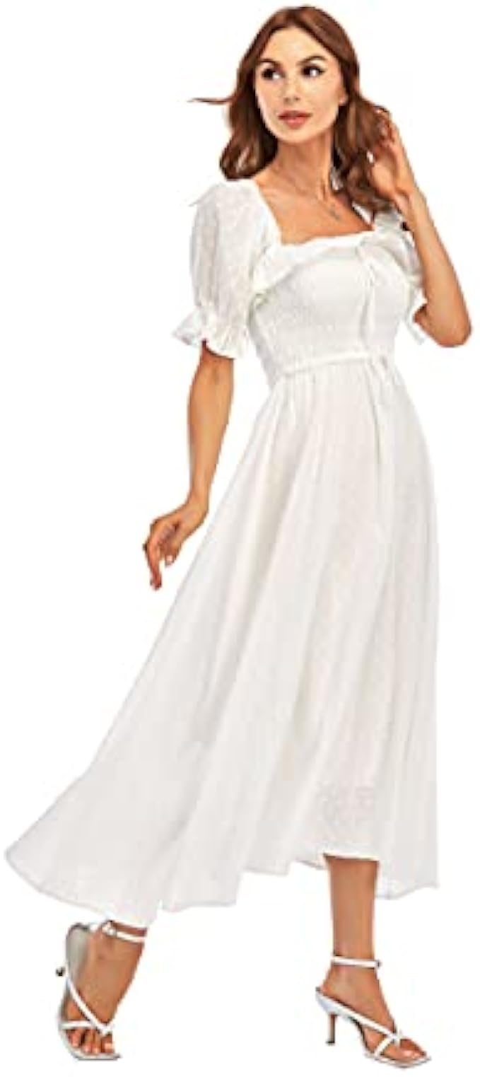 R.YIposha Women Vintage Elastic Square Neck Ruffled Half Sleeve Summer Backless Beach Flowy Maxi Dresses