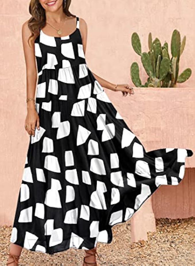 • The Casual Loose Dresses are flattering for any figure: Casual, Sexy but Elegant. The Empire Waist design can hide your belly. The Spaghetti Straps are adjustable up or down for perfect fitting. They are long enough to touch or cover your ankles. 2 Hand pockets are nice for your phones, cards and keys. The go-to dress for your relaxed time